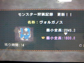 ヴォルガノ2頭クエしてて、やっとこさ出てくれた最少金冠。