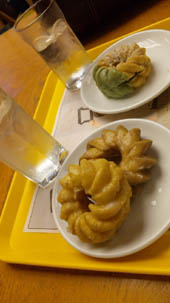 抹茶の新商品は持ち帰り用に買って、店で食べたのはフレンチクルーラー。