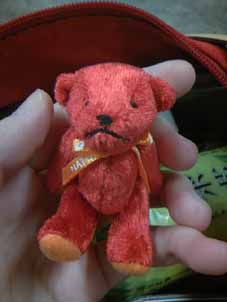 真っ赤な携帯に真っ赤なクマさん。
